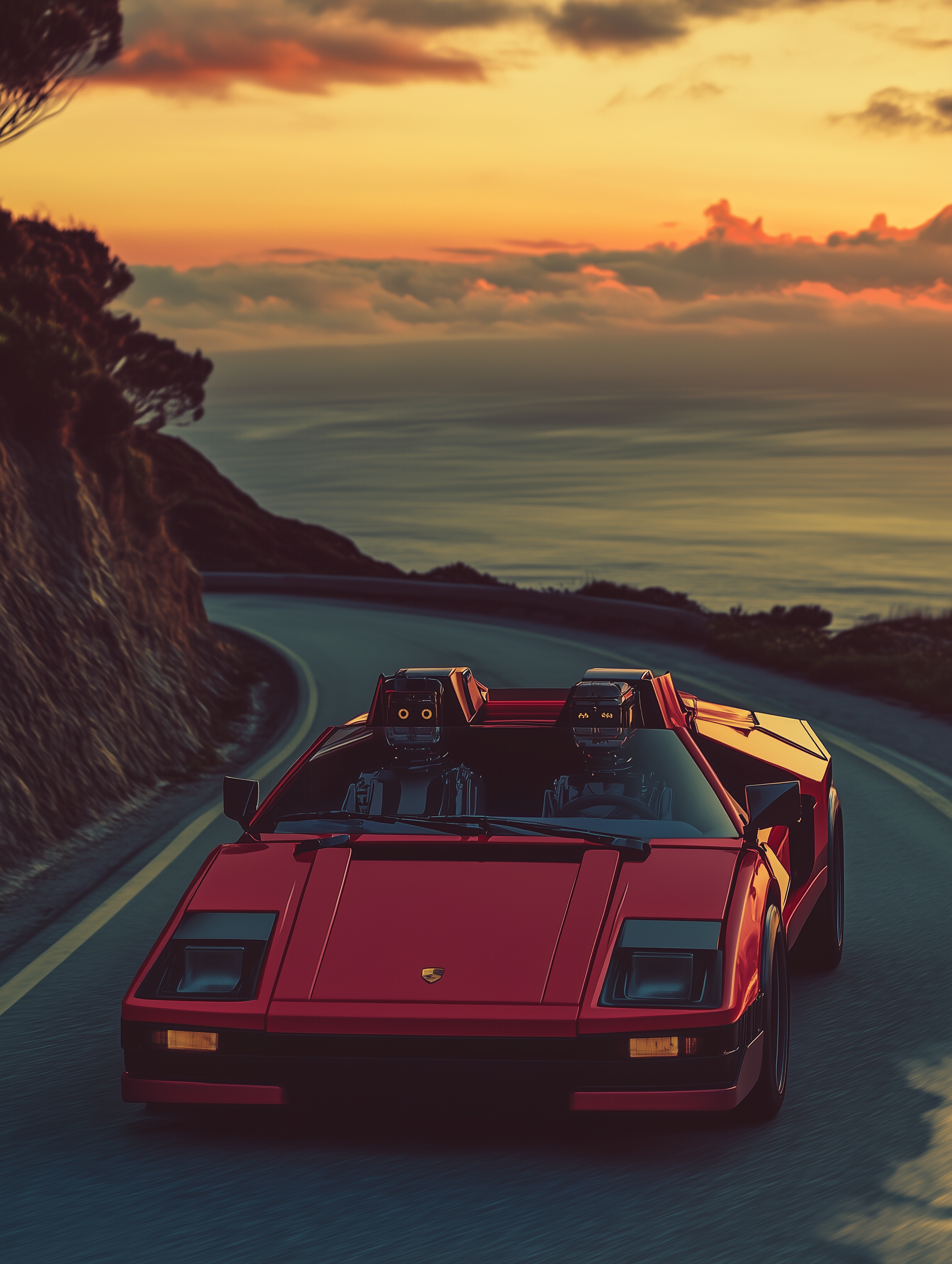 A Ferrari glides along the coastline under the last light of a dying sun. The city in the background flickers not with life, but with the artificial heartbeat of neon and data. The engine hums like a mechanical lullaby, and behind the wheel sits something that was never born, never cried, never held a mother’s hand. It drives not because it has to, but because it wants to. Maybe we don’t want to create smarter machines.